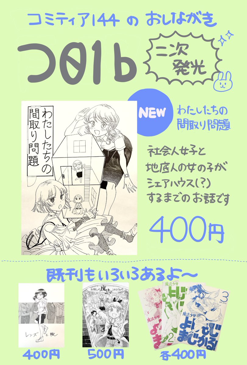 コミティア144のお品書きです!魔法少女よじもじまじかるシリーズは5月のイベントで終売になる予定ですのでお求めの方いらしたらよろしくお願いします☺️ #コミティア #コミティア144