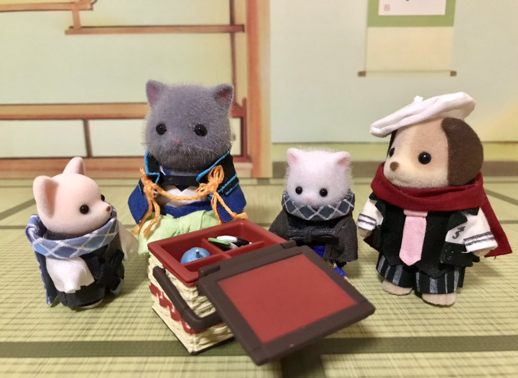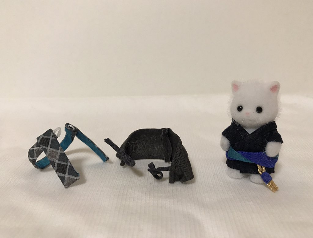 31 91 シルバニアのペルシャネコ(三つ子サイズ)で文士劇衣装のtkd先生を作成しました✨ ミニ!サイズですが今までの作品と同様 衣装は分割出来るようになってます #文アル手芸部 #コスバニア 22/10/09 20:01