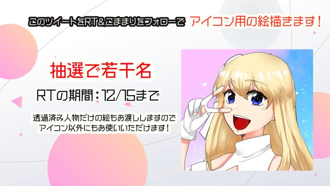 🙌🙌年末年始企画🙌🙌 このツイートをRT(引用不可)&こままりをフォローで アイコン用の絵お描きします!! Vtuberさんじゃなくても大歓迎✨ お気軽に応募してね! RTの期限は12/15まで その後抽選・当選者にDMにてお知らせ! #Vtuber #イラスト #アイコン企画 #アイコン依頼