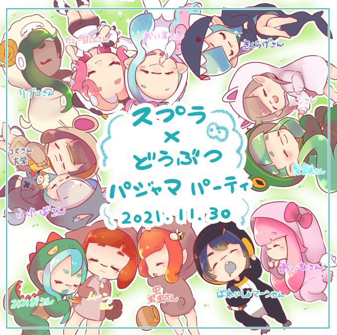 29 137 #splどうぶつパジャマパーティ 総勢13名!!!!参加するかわいいイカタコちゃんたちがフワモコのどうぶつパジャマで登場!11月30日18時に公開します🐾お楽しみに✨ 21/11/28 13:11