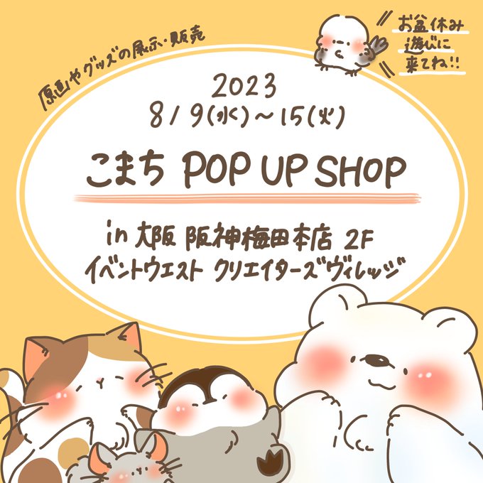 【ビッグニュース🎉】 「こまちPOP UP SHOP」の開催が決定㊗️ なんと阪神梅田本店クリエイターズヴィレッジにて、お盆休みを含む8/9~15に開催させていただくことになりました👏✨ 今後 #こまちPOPUP2023 にて色々お知らせしていければと思います🌱 多くの方に楽しんでいただけるよう頑張ります!