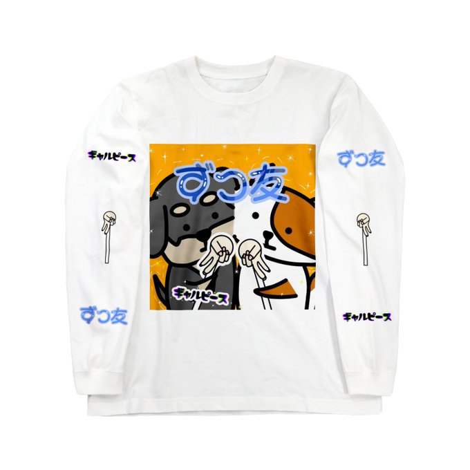 こまとごまの孫のずっ友の犬と猫のプリクラ ギャルピース(大)ロングスリーブTシャツ @komato5manoma5 変更した!きゃわ~💗 suzuri.jp/komato5manoma5… #suzuri #SUZURIで販売中 #イラスト