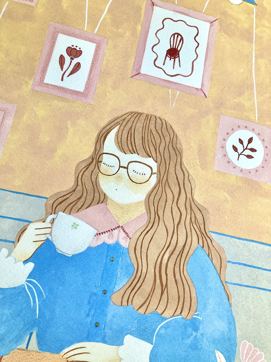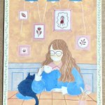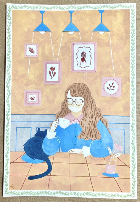 0 5 穏やかな午後 🌿 #illustration #illust #イラストレーション #Watercolor #水彩 #cafe #girl #cat #女の子 #猫 22/04/01 17:39