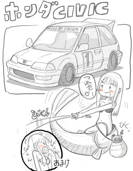 前回、なんのひねりも無いシビックの絵を上げたところ、ごうるどさん@nean_GOWLDより「ビクンビクンッ!ってなってる女の子」・・・というネタを頂きましたので、早速絵にしてみました。 折角なので、ごうるどさんちの子を、お借りして描いてみました。 シビクンビクン!!(言いにくいわw)