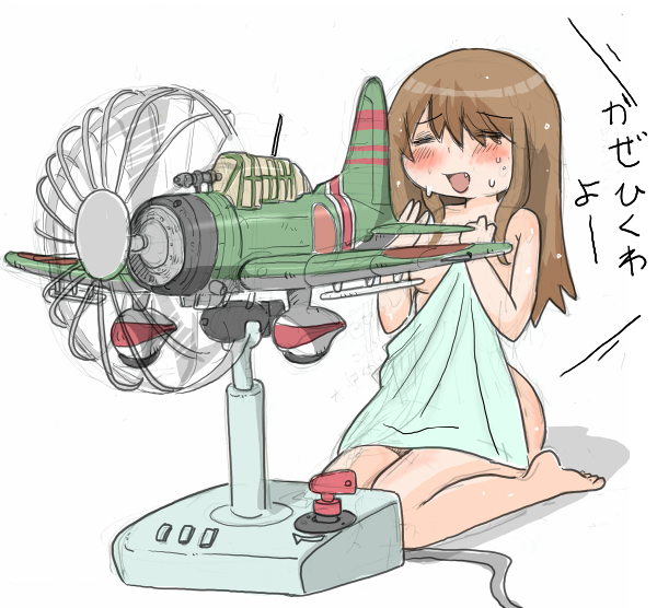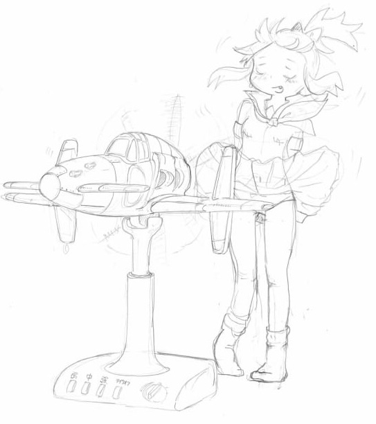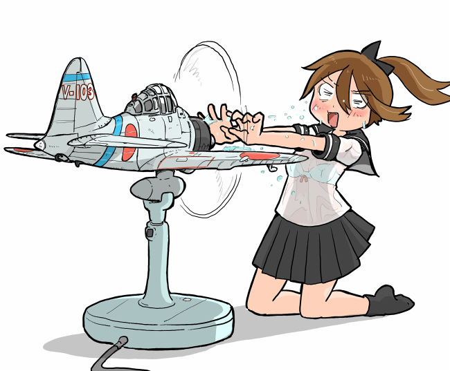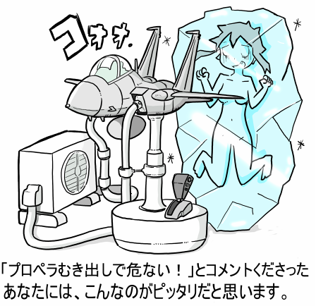 前々回の零戦扇風機の絵に「風邪をひくと思います」・・とご指摘頂きました。 このツッコミは初めてだww と言う訳でこの絵をアップします。「タイトルは冷えるはずなのに冷えん扇風機」です。 ※ちいさなおともだちへ、このひこうきのプロペラはぎゃくにまわっているよ!