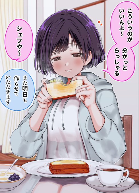 オフ会で出会ったおねえさんと家で朝ごはんを食べてる(2/2)