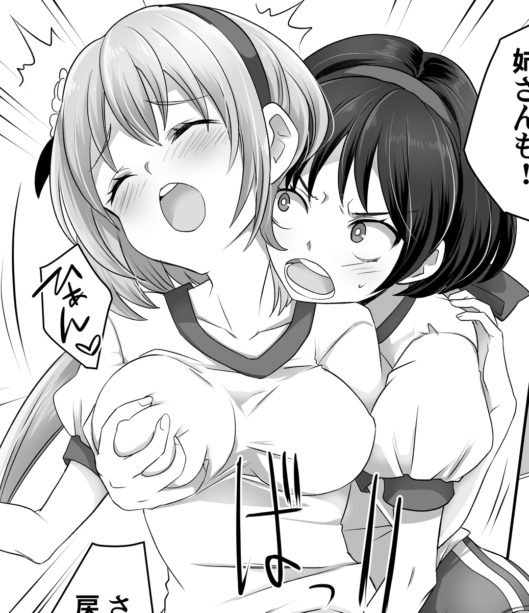 Skebで描かせて頂きました、弁々とメルランのケーキ作りイチャイチャです♡