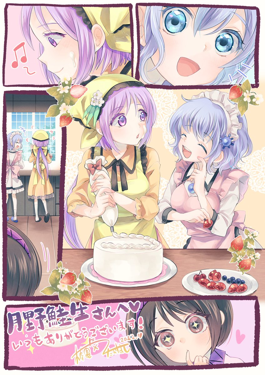 76 186 Skebで描かせて頂きました、弁々とメルランのケーキ作りイチャイチャです♡ 22/11/08 09:10