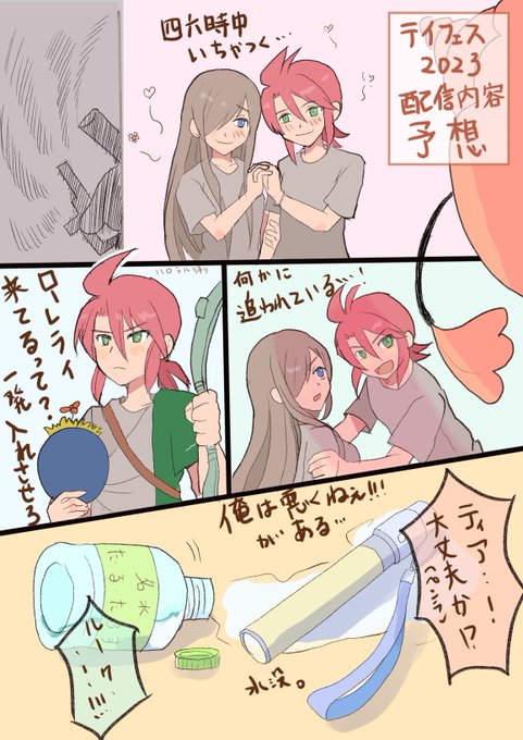 22 57 テイフェスアーカイブ視聴前にタイムラインに流れてきた情報を元にして内容を予想?した結果、よく分からないものが描き上がりました 結局ルクティアがイチャイチャしていたってコト…! 23/06/12 22:15