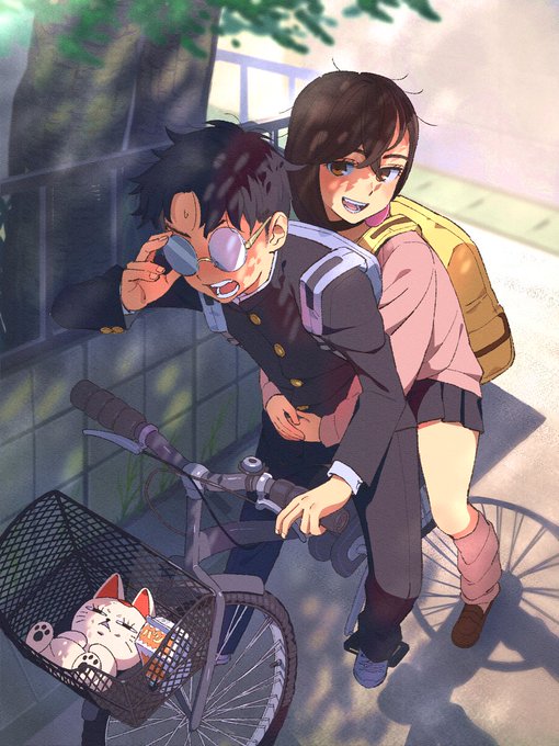 #ダンダダンファンアート投稿 交通違反だし正直重いけどカッコいいとこ見せたくて気合い入れちゃうオカルンと、オカルン相手だとボディタッチしまくるモモ…(訳:オカモモはいいぞ!)