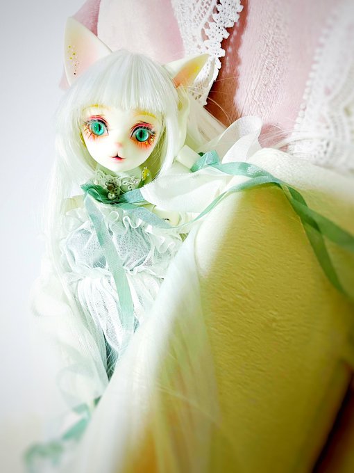#おはドル おはようございます🌞 猫耳ヘッドドレスとしっぽとレジンアイと口元とまつ毛が新しくなりました。(多い) 元気にお過ごし下さい💪✨