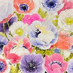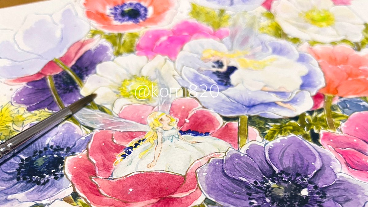 「Angelique🌷」 透明水彩 W&N水彩紙 2022.11 #透明水彩 #illustration #Watercolor #こーみの水彩絵 画像では見えづらく伝わりづらいですが、背景がキラキラしています #華愛慕展_ArtMoonBell にて展示販売します💐
