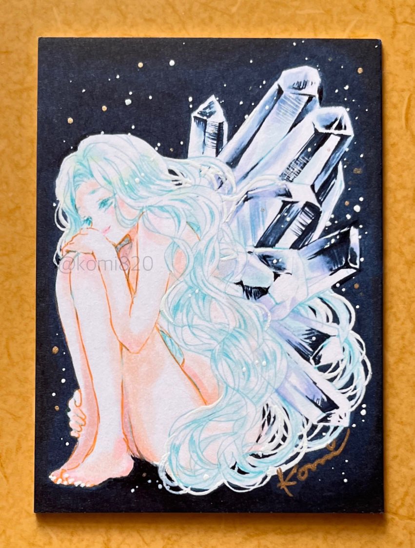 #ゴールデンウィークSNS展覧会2023 ミニ原画や小さめの作品たち (展示によって付けることのある)手描きキャプション(大変だけどつくるの楽しい)も含めてお気に入り☺️ 4枚目の妖精さんたちも気に入っていて、この子たちもまた描きたいー!🌒🌕🌘