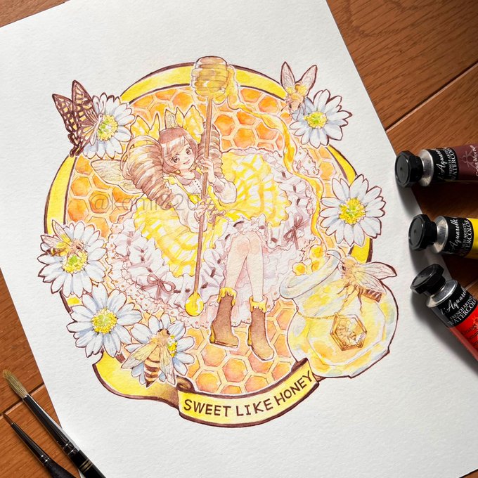 #今月描いた絵を晒そう 華愛慕展(会期12/6〜11)で展示する絵を描いてました🤗 展示テーマでもある-花とわたしの好きなもの-をたくさん描きました! 自分が好きなものはなんだろう、と自分を見つめる良い機会にもなりました。 みつばち🐝やてんとう虫🐞も好きだけど描いたのは初めてで、楽しかった😊