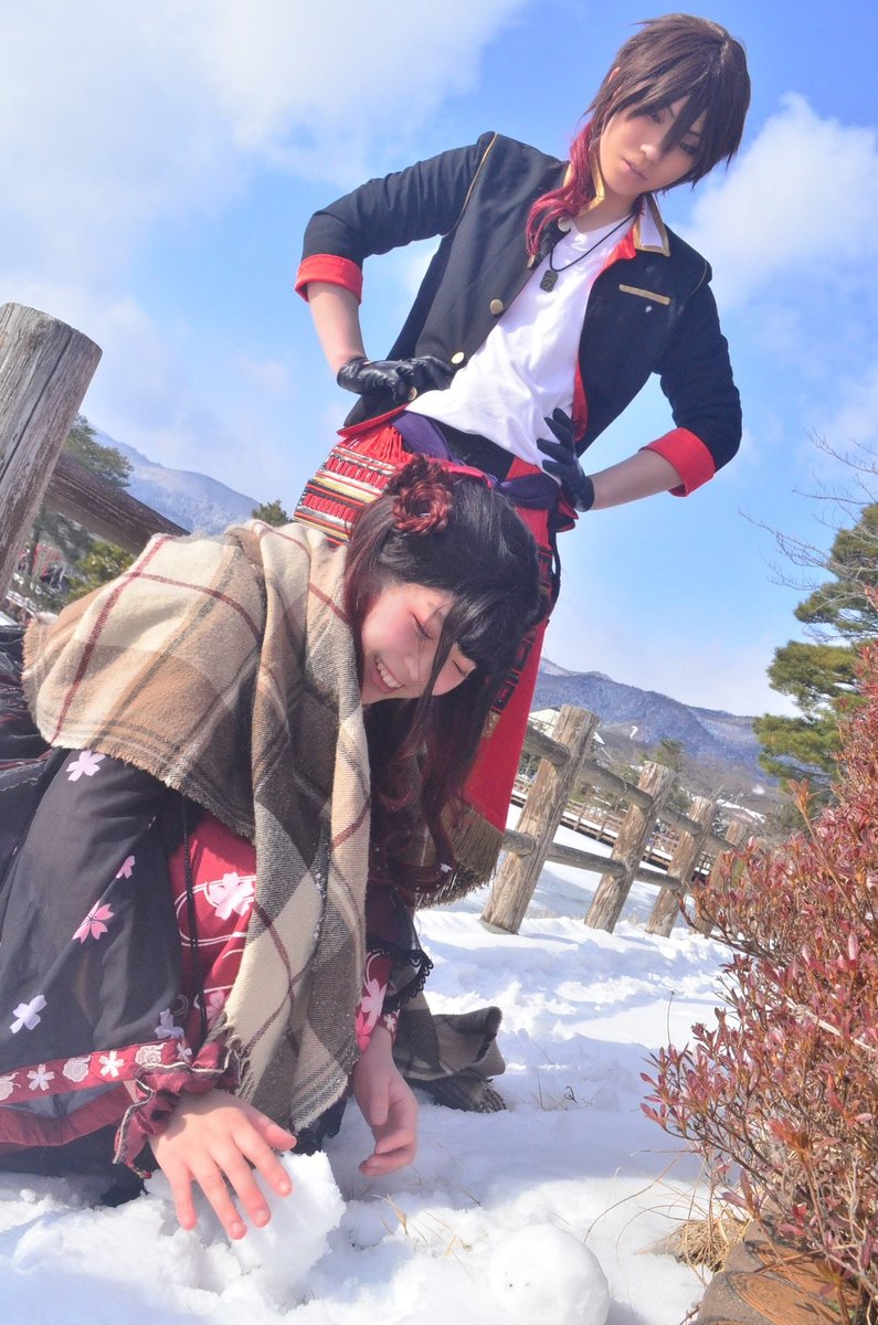 ※cos くりさに 創作審神者※ この主は雪の中歩き回ったり雪遊び始めるから…内心風邪ひかないかと心配して見守っていた大倶利伽羅です← #コスビート国見