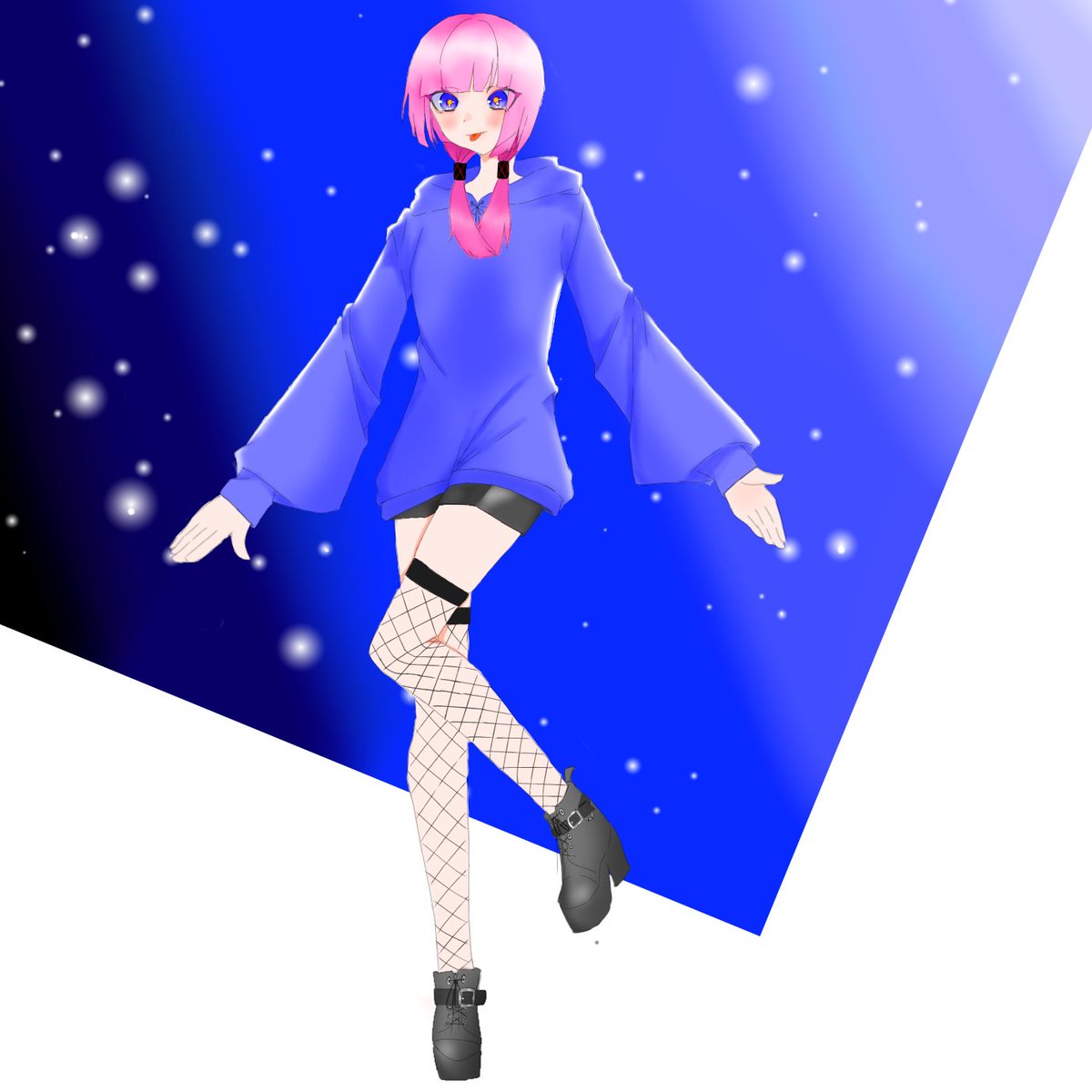 全身と背景に挑戦。 厚底ブーツと花譜ちゃん 可愛い。 #花譜美術部 #花譜 #イラスト #お絵描き