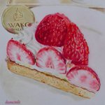 おはようございます 色鉛筆画 完成しました。 三軒茶屋の二足歩行さんで 頂いた "ロアール エ マロン" 上のパリッとしたデコレーションとプディングのような柔らかい質感とソースなどかなり難しいかったです。 #木漏れ日のお絵描き