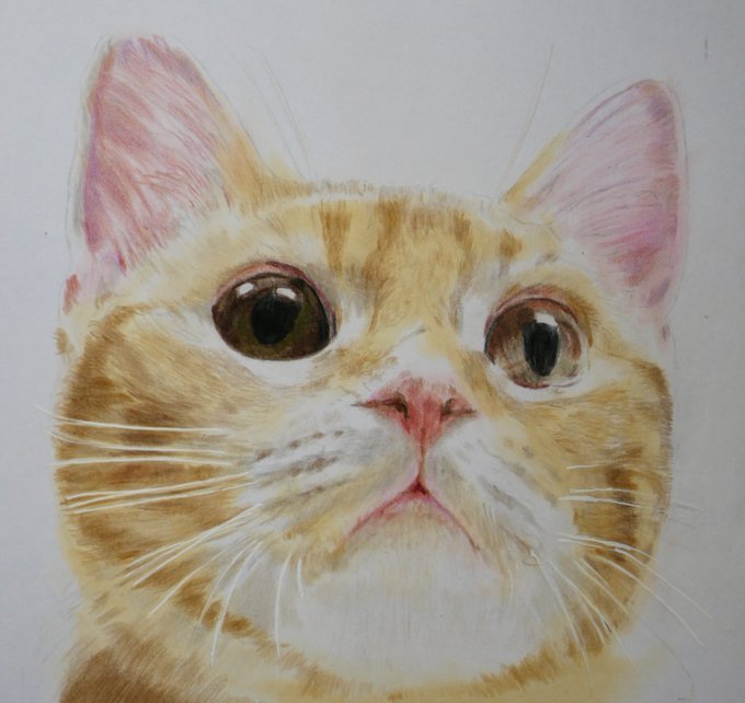 色鉛筆画 ふぅ😌 あんまり お待たせできないので 頼まれた にゃんこちゃんの色鉛筆画を 仕上げました。 まだ、わんこが一枚 予約… 差し上げる絵とはいえ いや だからこそ 思いをこめて❤️ 色鉛筆 ファーバーカステル パンパステル ホルベイン #色鉛筆画 #木漏れ日のお絵描き