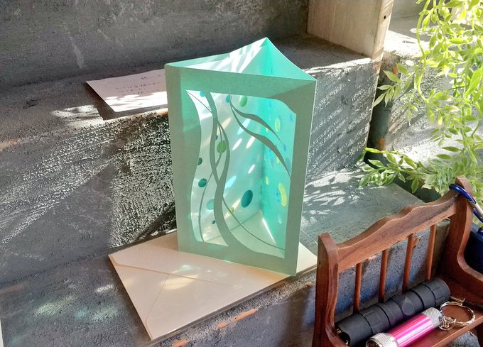 作品について どうぞお手にとって、ひかり絵はいろんな角度からライトを当ててお楽しみくださいね🌈 12/2-12/6 @lupopo_cafe #個展ひかりの便り #ひかり絵Sunartpaper