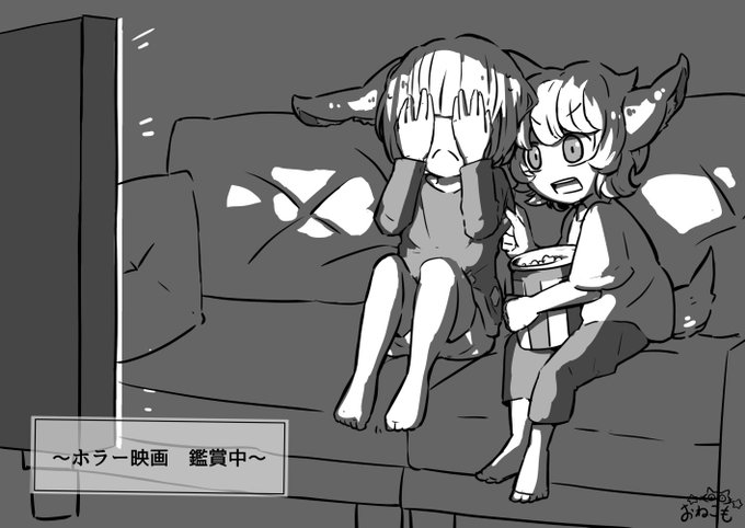 おうちでホラー映画観賞会 #イラスト #ケモミミ #illustraion
