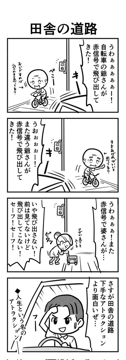 1 3 7月11日の岡山県です 『田舎の道路』 #4コマ漫画 #四コマ漫画 #4コマ #四コマ漫画 23/07/17 19:28