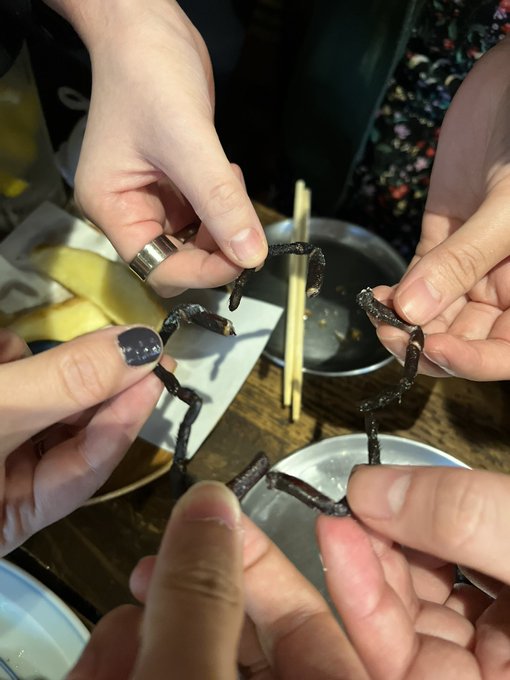 40 161 今日はきらら作家さん達とタランチュラをシェアして食べました🕸️ 23/05/20 21:21