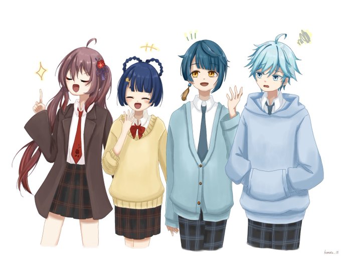この4人にはずっと仲良しでいて欲しいです😌 #原神 #Genshinlmpact #原神学パロ #原神絵描きさんと繋がりたい #胡桃 #香菱 #行秋 #重雲