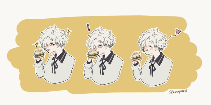 《 #ごはんを食べる男士企画 》 『は、はんばぁがぁ、美味しいです…!』 五虎退
