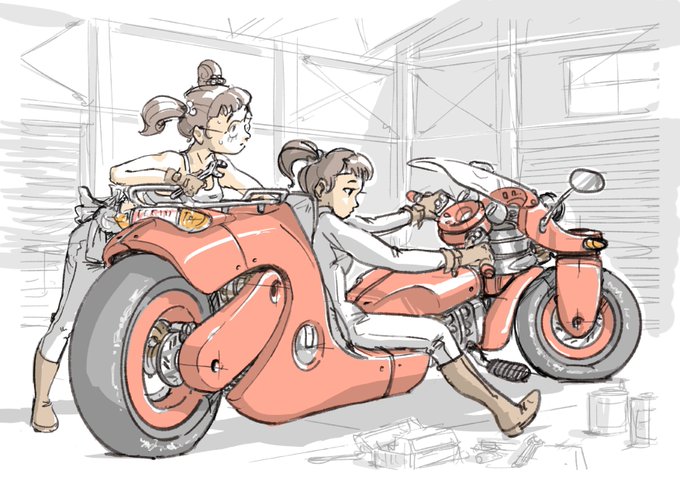 0 5 #バイクの日 メカは作画カロリー使う。 昨年描いた絵でお茶濁し。 23/08/19 10:14