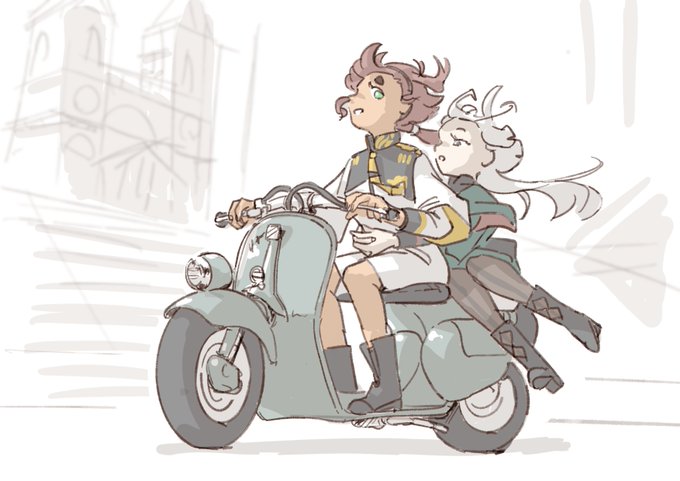110 388 #バイクの日 耳の後ろにあせもができて皮膚科に来ました。待合室でお絵描き。 水星の放送中、ローマの休日を観てとっさに描いた絵を修正加筆。#水星の魔女 23/08/19 11:14