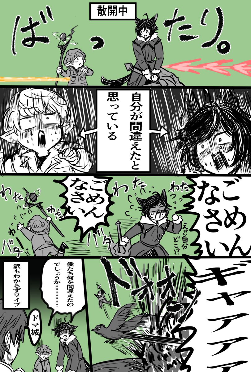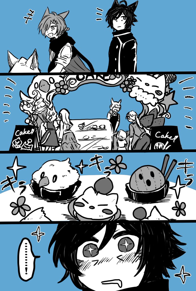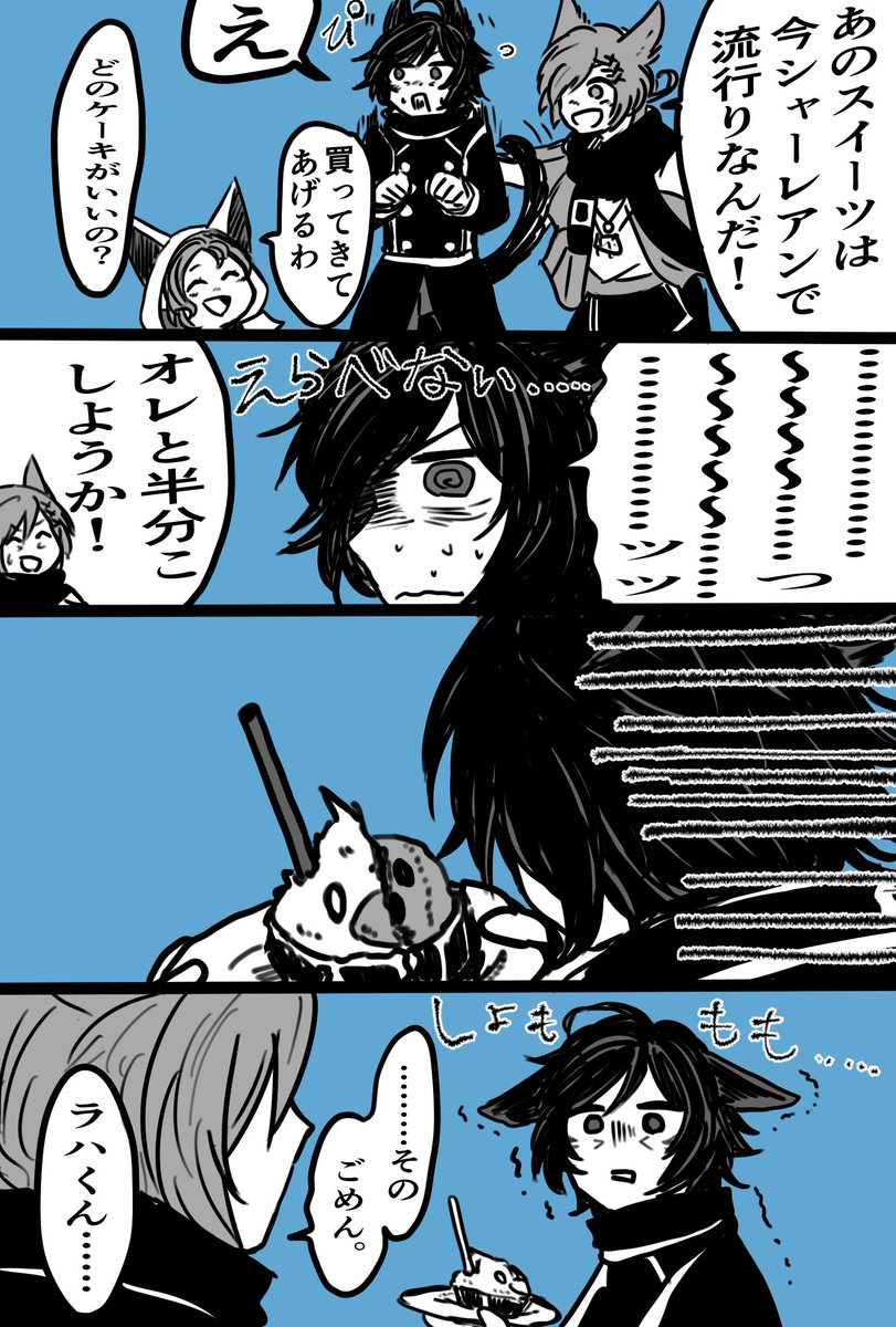 リクエストの猫舌ラハくん!お待たせしました!!! おーーーい!!ヒカセン!!サボってないでフーフーしてやれ〜〜〜!!! #頭割り4エアスケブ twitter.com/kona572/status…