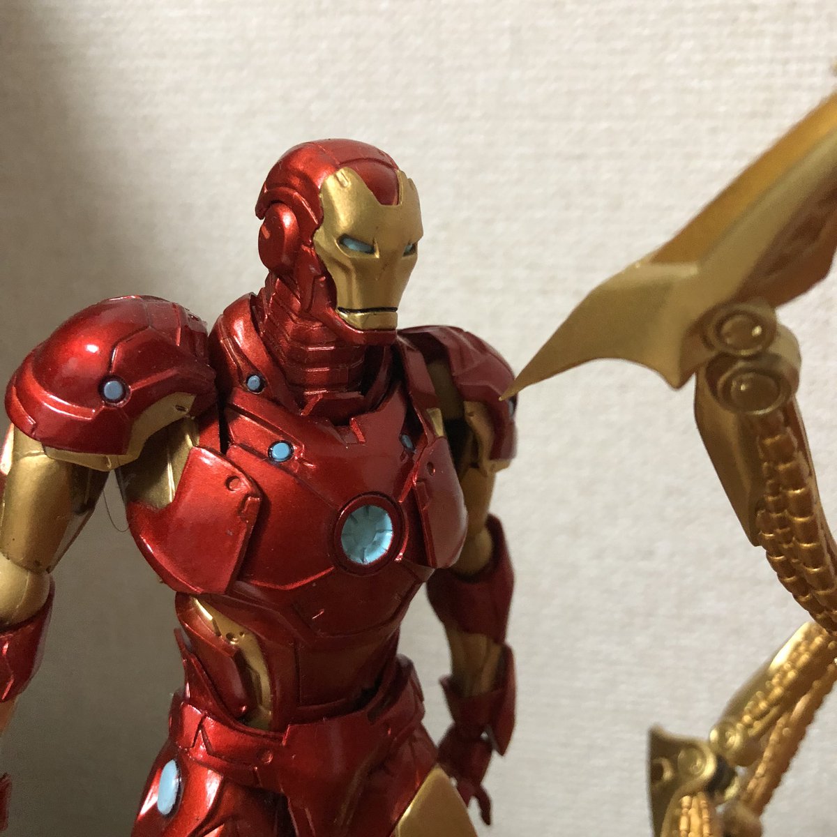 23 100 アメイジングヤマグチデッドプール新旧比較。 2.0はよりマッシブでディテールや塗装も緻密に。 2.0はジョイント以外完全に艶消し 肩は動かした時のラインがより自然。 首回りも1.0は付け根からは前後にしか可動しなかったけど2.0はボールジョイントで自由自在。 22/03/04 14:08