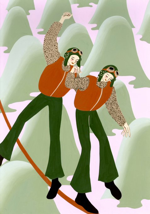 0 5 梅田蔦屋書店の個展で展示中のアクリルガッシュ作品。 「遊び」をテーマに描いています。 公園の平均台や道路の白線でバランスとってる時、ここはめっちゃ高いところ!とか下はマグマ!とか想像して、落ちたら死ぬ!の気持ちで遊んでたな〜って思い出して描きました🔥 個展見にきてね🦀 23/07/08 12:15