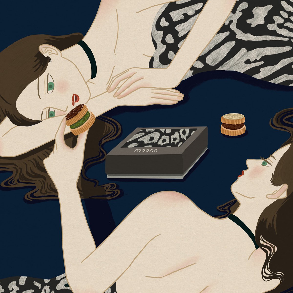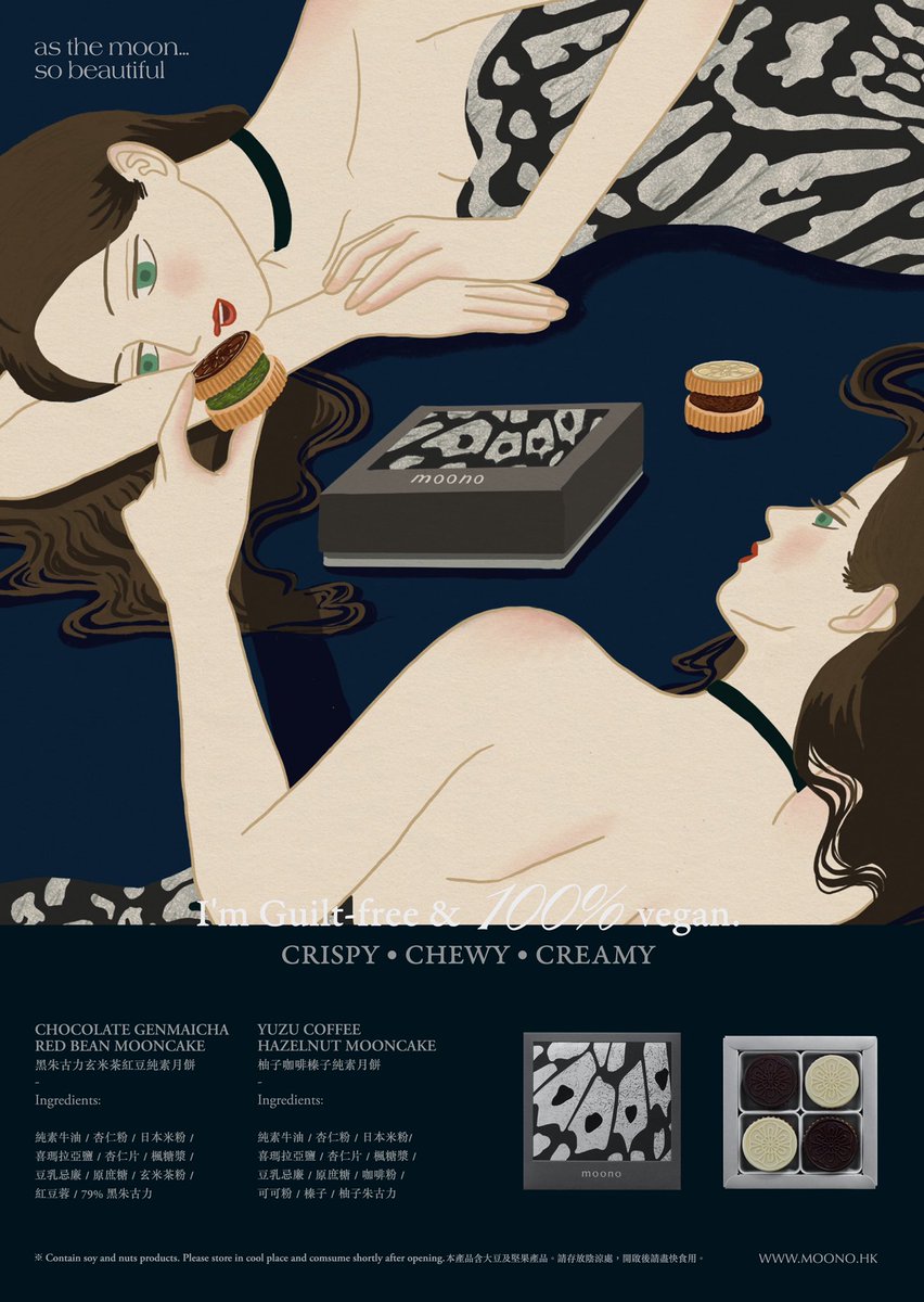 仕事で描いた絵も可愛いです🌙(香港のお菓子屋さんのお仕事)