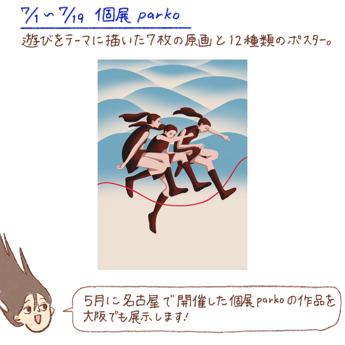 名古屋で初個展します! 遊びをテーマに描いた作品やグッズを展示しますのでぜひ見に来てください🏃♀️ (新旧作品と全商品持って行くからまたボリューミーな展示になりそうです🦀) ※個展情報はリプにつなげてます⬇︎