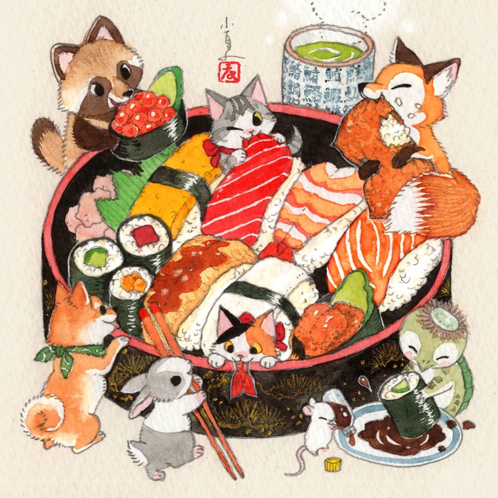 みんなでお寿司🍣 銀座ロフトで開催されるPOPBOX GINZAにて 「NIPPON」をテーマに描いた原画の展示をいたします! 作品は抽選で販売もいたします 応募方法はこちらをご覧ください popboxinfo.exblog.jp/32944928/ ・・・ 《POPBOX GINZA》 ■4/15(土)~5/14(日) ■銀座ロフト 6階 twitter.com/popbox_sp/stat…