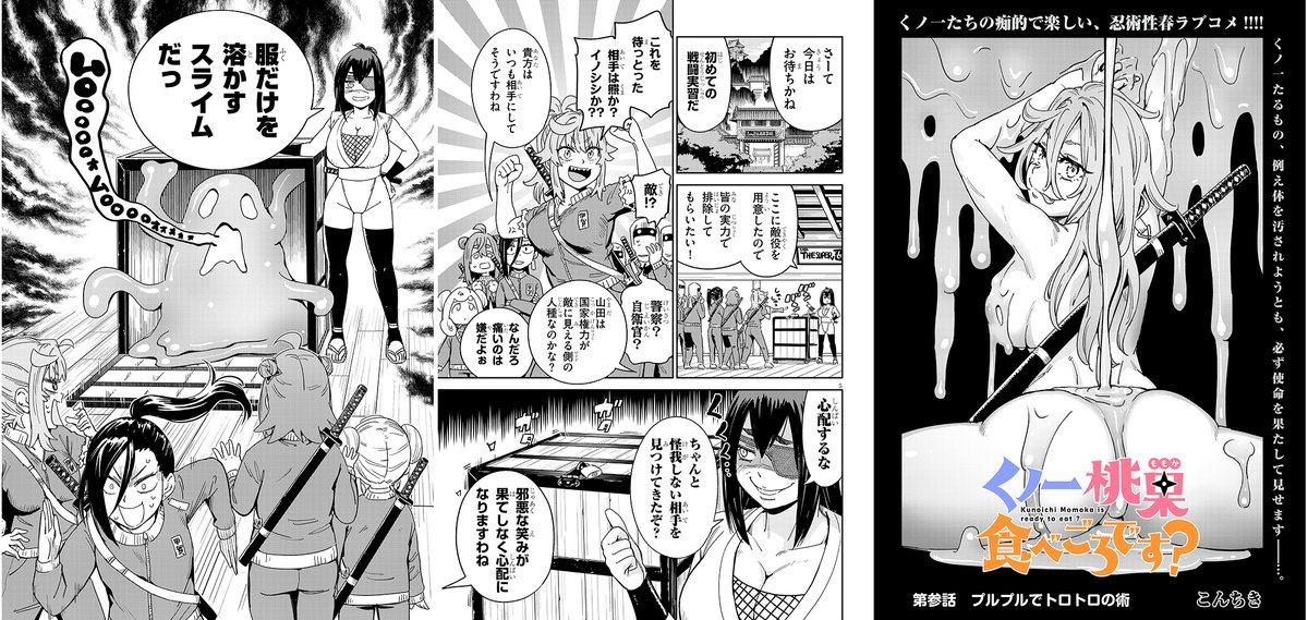 「くノ一桃果食べごろです?」更新されました 3話「プルプルでトロトロの術」(20p) くノ一たちがエッチなスライム相手に奮闘します コミックウォーカー comic-walker.com/viewer/?tw=2&d… ニコニコ漫画 seiga.nicovideo.jp/watch/mg752476…