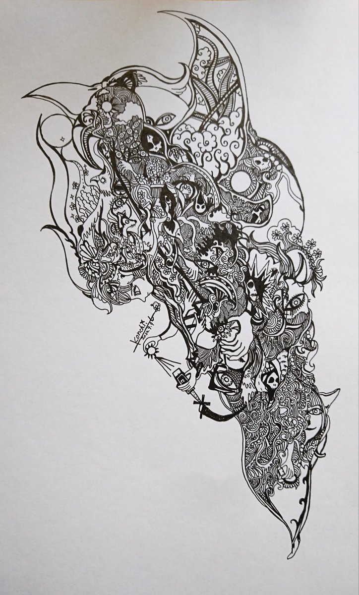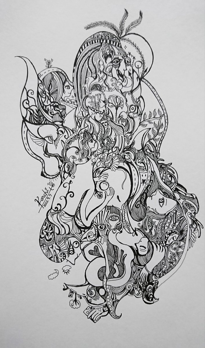 こんばんは🍁 朝晩はかなり冷えて本当に寒いです お身体お大事にしてくださいね 投稿は久々?の新作です🍀 引き続き【ちゃぶら屋さん】 での作品も宜しくお願いします🙇⤵️ 題名「紐解き」 2022.10.30 Konchi.t ボールペン size A4 #art #絵 #落書き #イラスト #拡散 #豊橋 #ちゃぶら屋 #Konchit