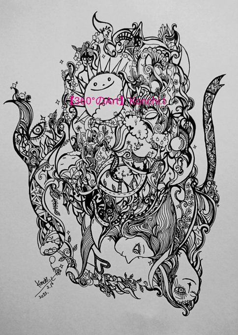 おはようございます🍀 今回は原画をそのまま 加工無しで 専門的な知識はありませんが 1人でも多くの方に絵を知って頂く事で次に繋がる何かの ステップになるといいな~ 【360°のArt】新作 題名「回して見る絵」2022.9.6 ボールペン A4画用紙 #絵 #落書き #Art #イラスト #拡散 #新作 #Konchit