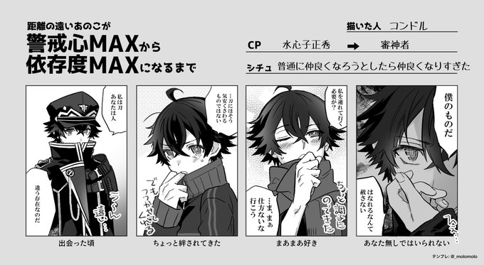 199 1612 テンプレートをお借りして警戒心MAXから依存度MAX水心子くんを描きました 23/08/16 14:33