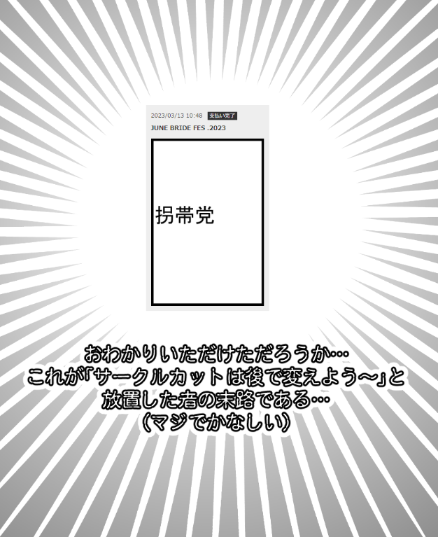 36 70 こんなぎりぎりにJUNE BRIDE FES .2023サークルスペースやお品書きのお知らせです 東5ホール「は28a 拐帯党」います 23/06/24 14:47