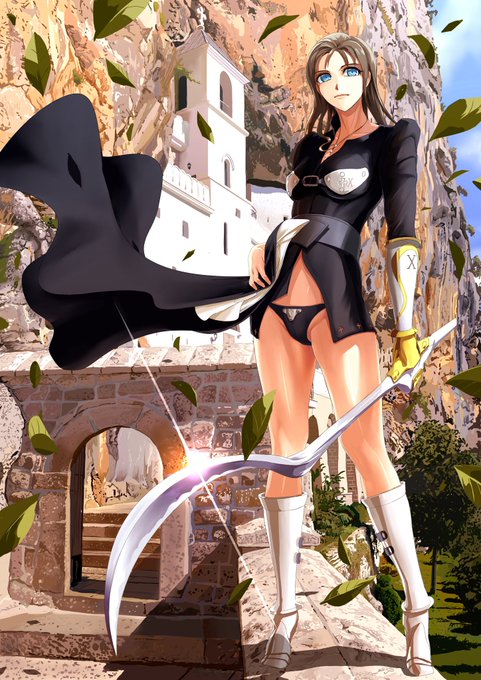 今回のビキニアーマーは 砲撃に対抗する魔剣ストームブリンガーを描きました。 取り付いた人に吸収した魂を生命力で供給する魔剣。負の元気玉? #ビキニアーマー 死神は空からやってくる | kondosan #pixiv pixiv.net/artworks/10278…