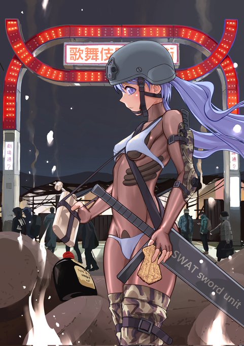 中世再来ビキニアーマー!新作できました! 舞台は不滅の歓楽街 新宿歌舞伎町!! 用心棒の日給はウイスキーとイカフライ #ビキニアーマー 中世再来 新宿最後の用心棒 | kondosan #pixiv pixiv.net/artworks/96243…