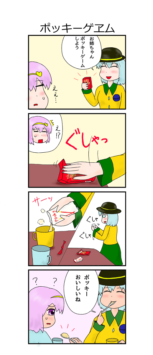 3 4 こいしのポッキーゲーム #漫画 #東方 #古明地こいし #古明地さとり pixiv.net/artworks/10328… 22/12/02 20:53