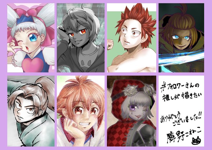 #フォロワーさんの推しが描きたい 簡易まとめ(単体一枚絵はメディア欄参照) 全部主線のペンとか色の塗り方とかフィルターとか変えてアイビスで、1日1枚…! めっちゃ楽しかったです!またやりたい~♪