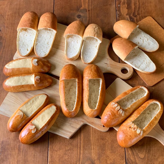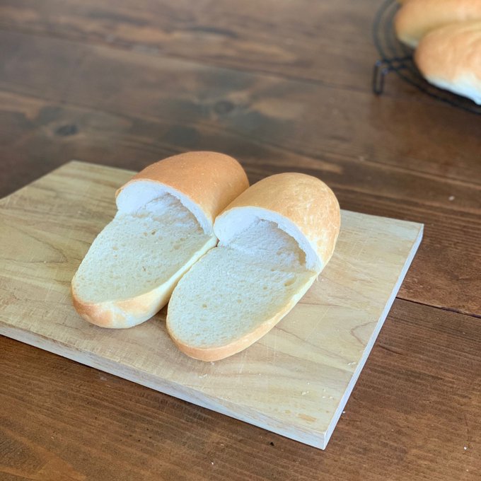 4913 37.6K サンドイッチ用に普通のコッペパン作ったのだけど焼き上がりを見たらスリッパにしたくなってしまった、、 こうやってすぐ余計なことをしてしまうのが私よ、、スリッパン笑 23/05/24 14:18