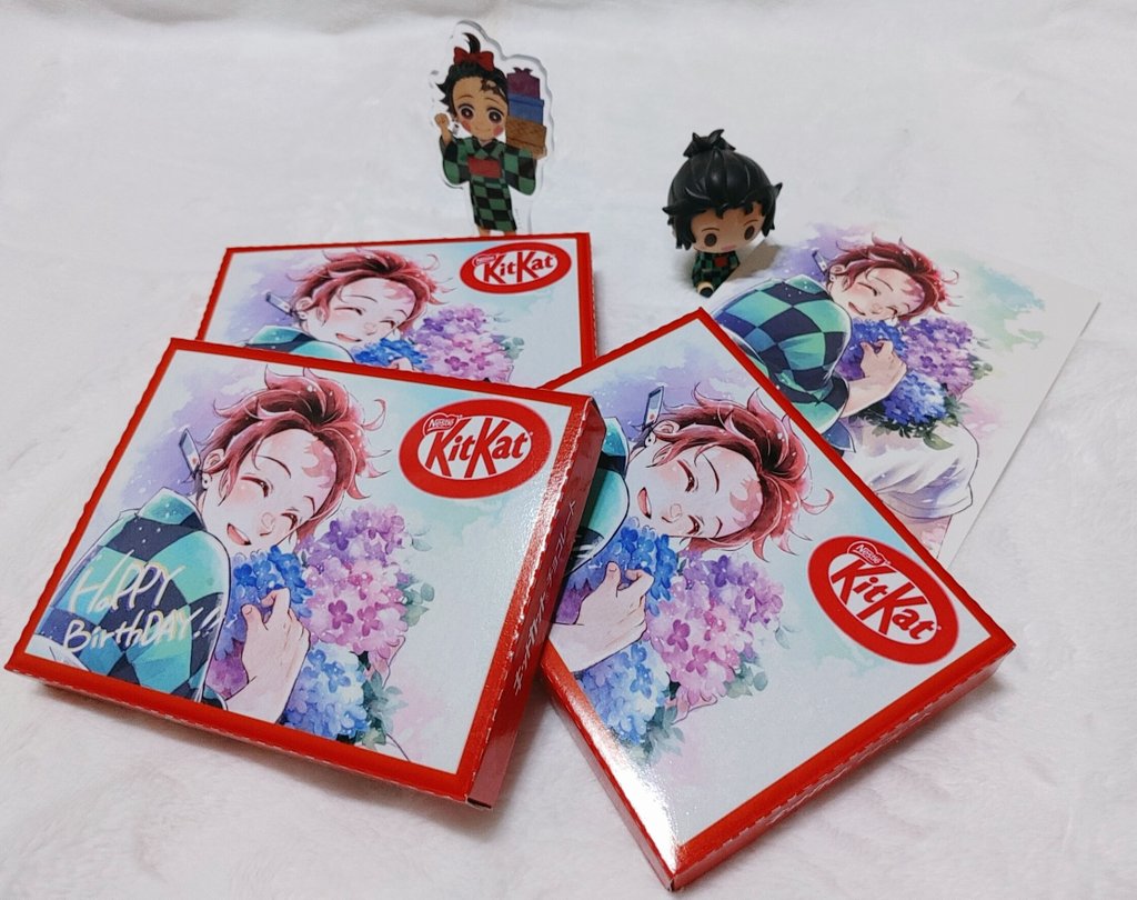 [RT] 7/14 귀멸의 칼날 주인공 탄지로 생일🎂을 앞두고 「7월 7일~10일까지 rt하신」 분들 중 2명 이상을 추첨(11일 0시 이후)하여 사진속의 DIY킷캣🍫(일본 킷캣사 제작-「쵸코라보」)+엽서✉️세트를 탄지로 생일 이전까지 보내드리려 합니다.😊🙏 7/14 탄지로 생일 잘 부탁드립니다🙇♀️