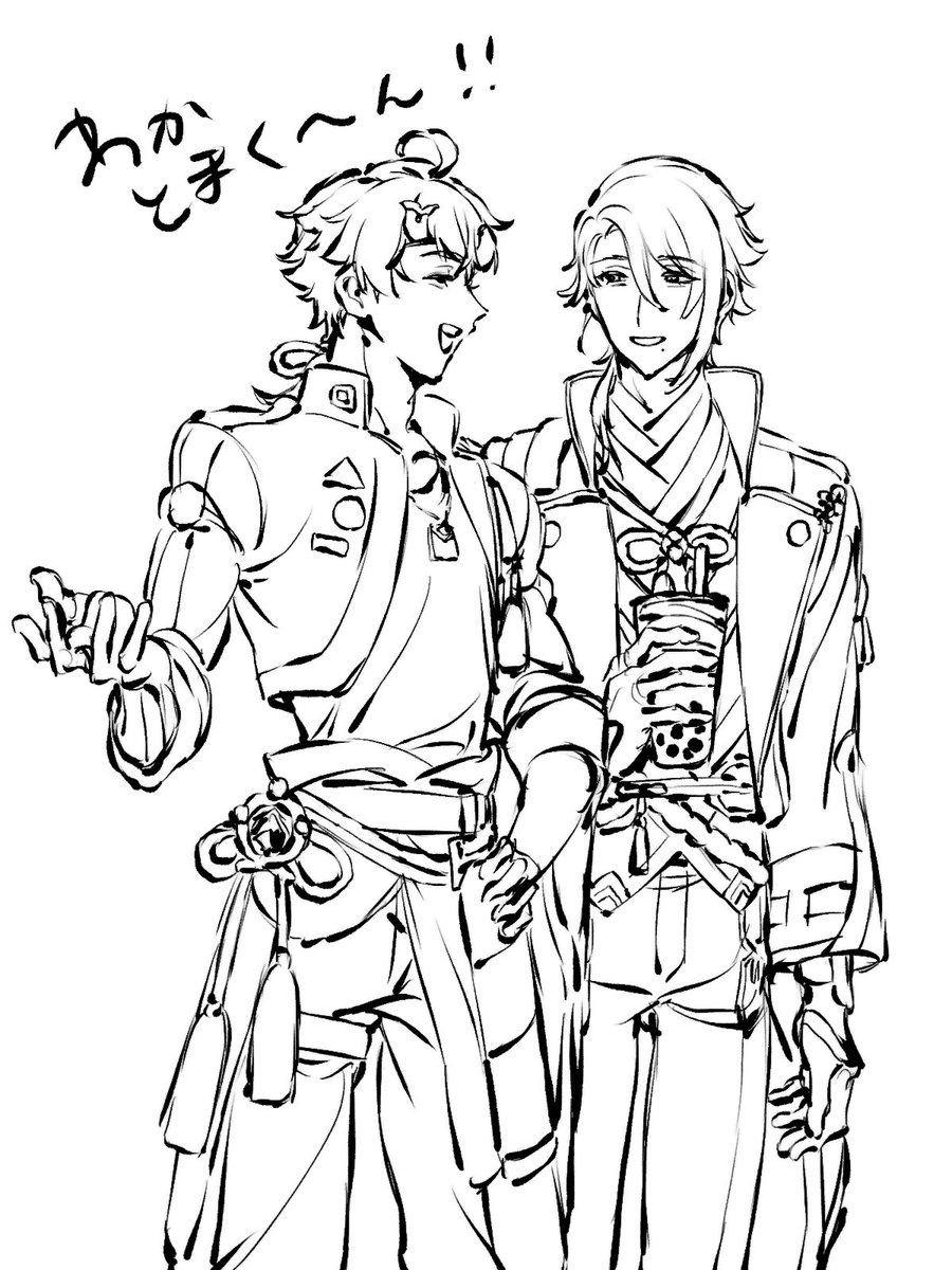 みゃさんの絵茶にお邪魔してお隣で若トマ生命感じながらカキカキさせていただき申した…現パロ🧋🍡