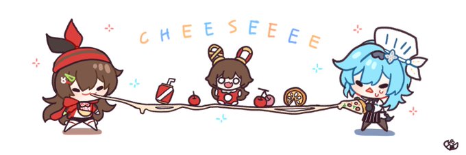 #Genshinlmpact #原神 Super duper amazingly chewy endless cheeseeeeeeeee 이번 피자헛 뉴일러 복장 넘 귀여운거 아닌가!!!?