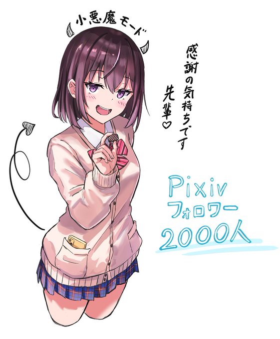 pixivフォロワー2000人達成イラスト! ということで、先日キャラデザ担当させていただきました、風井明日香先生(@macocoa51410)の「小悪魔可愛い後輩に家庭教師として雇われました」の後輩ちゃんこと「椎名梓ちゃん」にて記念イラスト描かせていただきました!!夜露死苦!! #絵描きさんと繋がたい